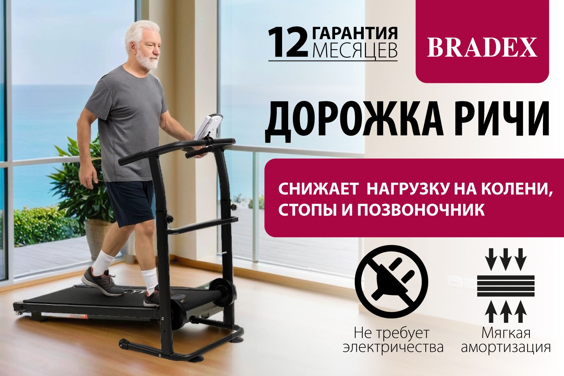 Беговая дорожка РИЧИ это механическая дорожка, которая не требует подключения к сети.