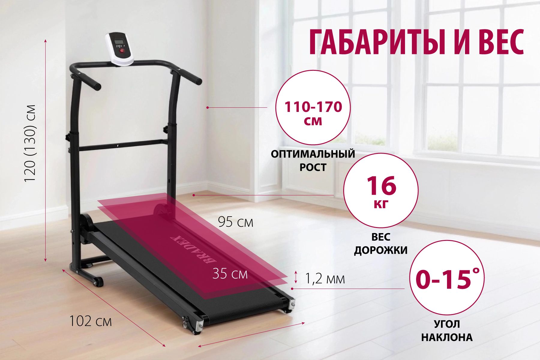 Благодаря компактным размерам, дорожка не требует много места, а при необходимости ее можно быстро сложить и убрать .
