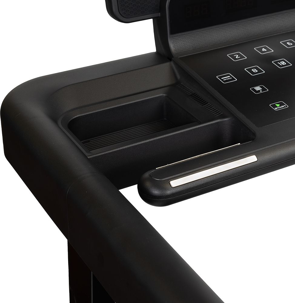 Поручни с сенсорными датчиками пульса и дополнительными клавишами управления расширяют возможности тренировочного процесса.