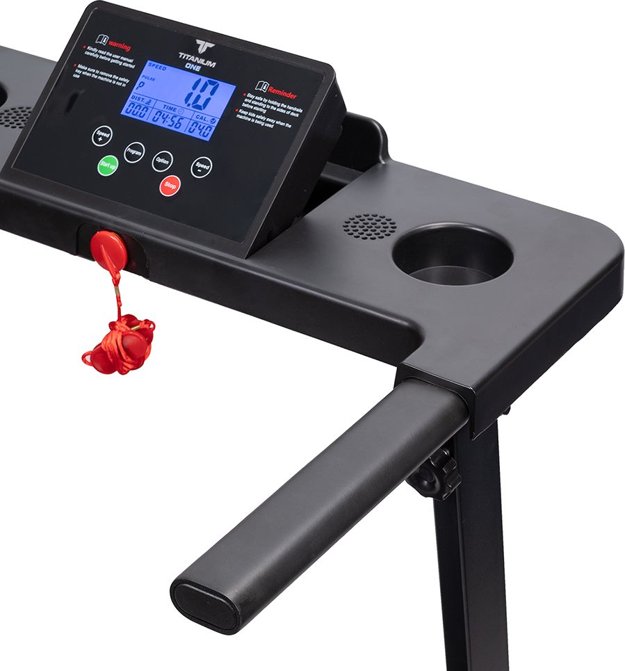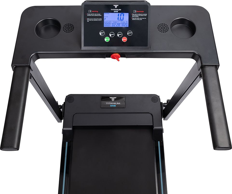 За движение отвечает надежный двигатель пиковой мощностью 2 л.с. постоянного тока. Скорость регулируется в диапазоне от 1 до 8 км/ч - на максимуме этого вполне хватает для лёгкого бега. Размеры бегового полотна составляют 101 см. в длину и 40 см. в ширину - обеспечивает комфорт и безопасность при ходьбе и беге на любых скоростях, включая максимальные. Несмотря на сравнительно небольшие размеры бегового полотна, тренироваться на Titanium One Т25 Special blue может пользователь ростом вплоть до 190 см, но есть ограничение по максимальному весу пользователя - 120 кг. Если вес превышает это значение, следует обратить внимание на модели уровнем выше.