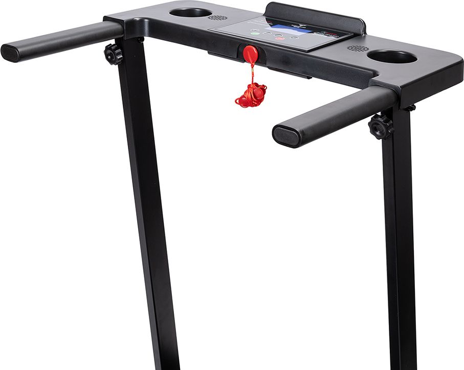 Для вашего удобства в консоль встроены два отделения для хранения бутылки с водой и мелочей, имеется подставка под телефон или небольшой планшет, а так же при сложенной консоли можно положить небольшой ноутбук размером до 15 дюймов(для сохранности ноутбука рекомендовано использовать только режимы ходьбы).