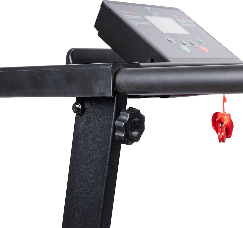 Перемещение дорожки происходит за счет 2-х транспортировочных роликов. Так же предусмотрена возможность быстрого складывания, для этого необходимо открутить 4 фиксатора и дорожку можно будет убрать под кровать, ведь её высота составит всего 14см!
