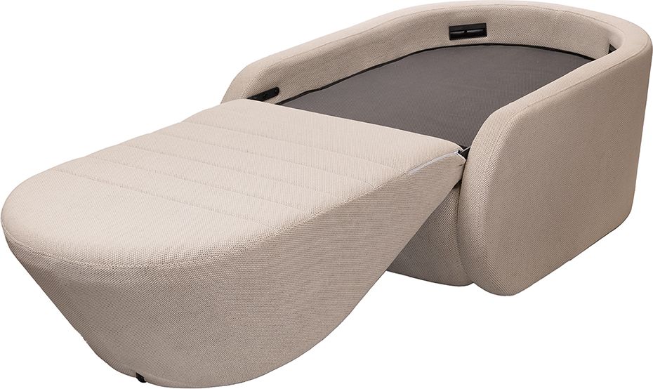 Уникальный механизм раскладывания позволяет трансформировать кресло из вертикального положения в горизонтальное.