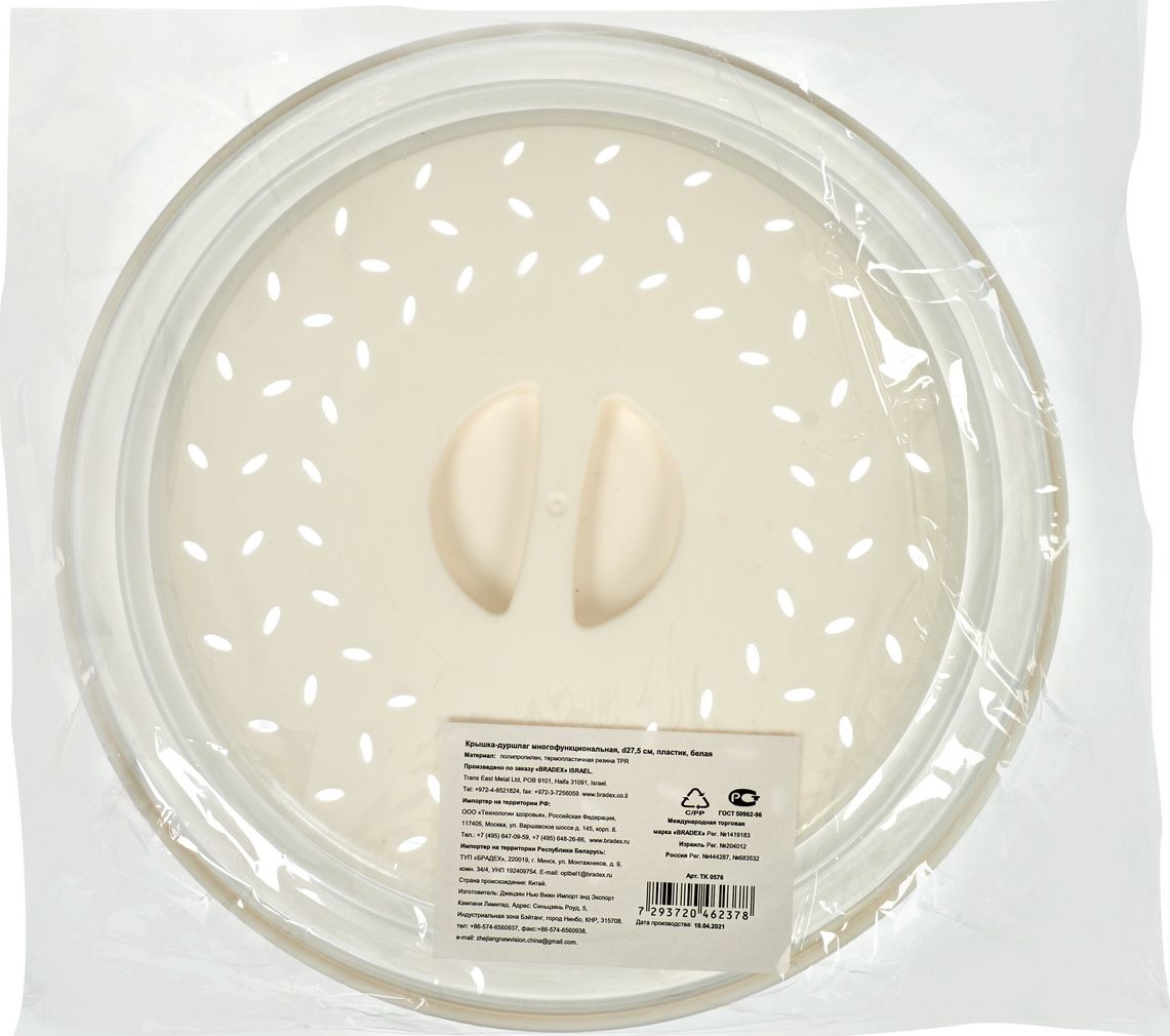 Крышка-дуршлаг многофункциональная, 27,5 см, BRADEX, пластик, белая