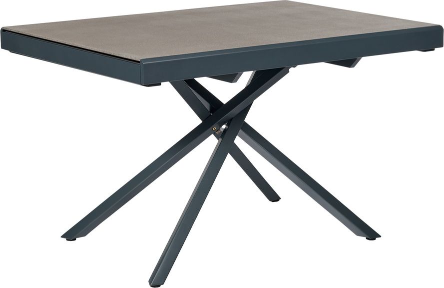 Раздвижной стол Melania — многофункциональный стол, добавляющий сдержанную роскошь в современный домашний интерьер. В сложенном виде стол компактен и подойдёт для интерьера кухни. В разложенном виде стол Melania вместителен, за ним можно собрать всех гостей, ведь длина стола составит 2,1 м. Раскладывающиеся части расположены с обеих сторон столешницы, что придаёт конструкции устойчивости. Цвет столешницы имитирует рисунок натурального камня. Тёмные металлические ножки закреплены на крестовине, что освобождает место для ног по краям стола и добавляет лёгкости дизайну мебели. Раздвижной стол Melania станет отличным решением для современного интерьера.