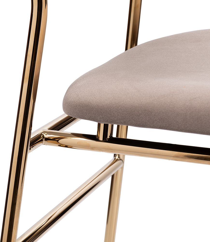Ножки стула изготовлены из полированной нержавеющей стали с покрытием из нитрида титана, что создаёт эффект натурального золота и придаёт изделию роскошный вид.