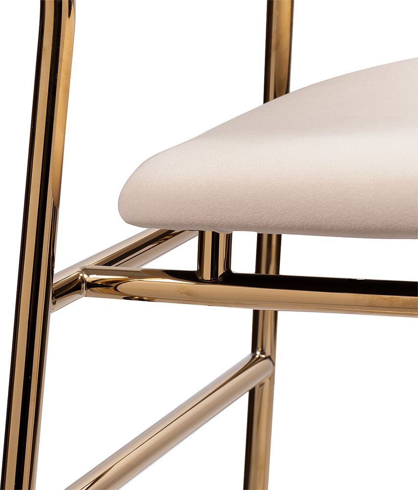 Ножки стула изготовлены из полированной нержавеющей стали с покрытием из нитрида титана, что создаёт эффект натурального золота и придаёт изделию роскошный вид.
