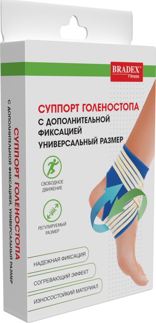 Для Вашего комфорта и снижения нежелательной нагрузки на голеностоп при занятии спортом и иной физической активности был разработан суппорт голеностопа с дополнительной фиксацией, универсальный размер. Он надежно фиксирует ногу, оберегая суставы и сухожилия от излишней нагрузки.